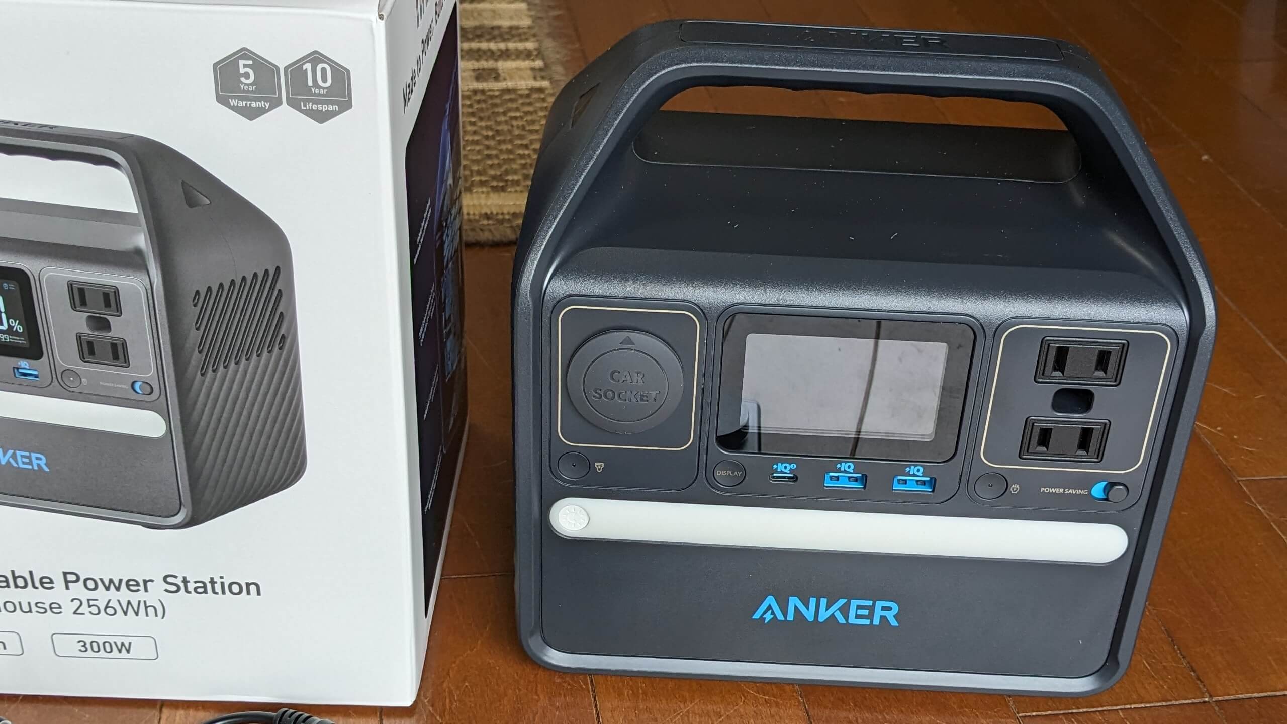 今回購入した Anker 521 Portable Power Station は、256Whのバッテリー容量を持っており、本体にも高輝度LEDを内蔵しているため、照明+充電の目的をクリアできそうです。